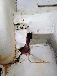 aux mites, patchée (pour offrir un minimum de support au revétement